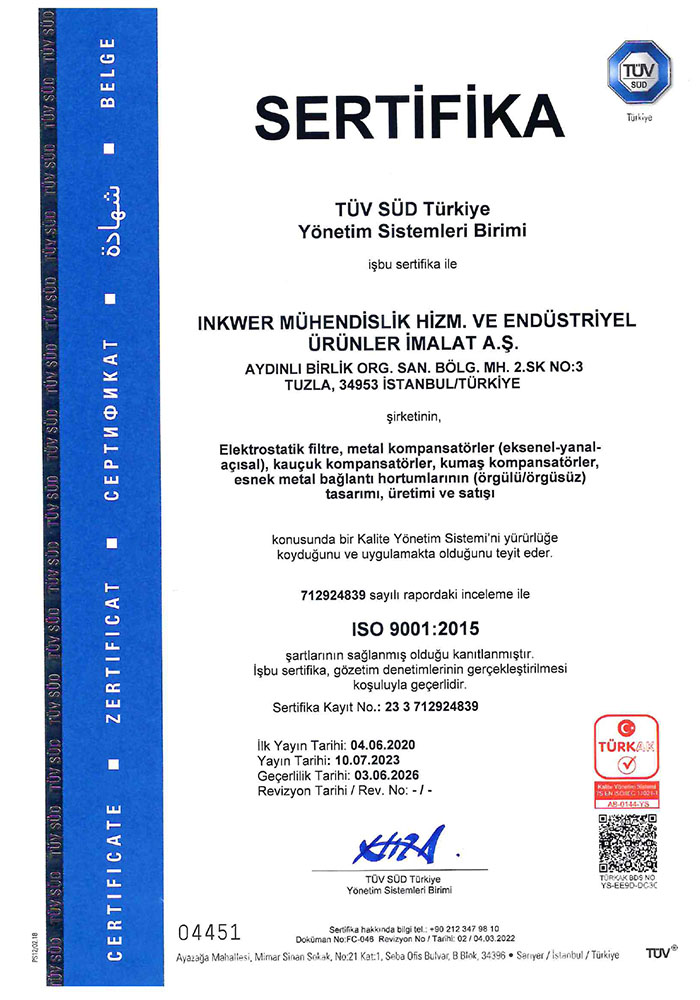 sahip olduğumuz kalite sertifikaları